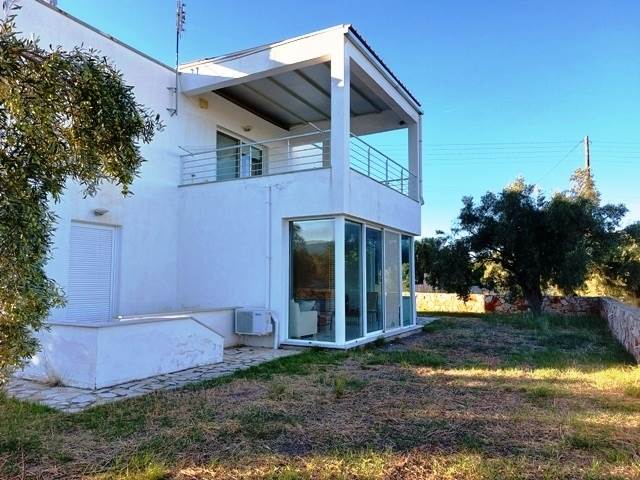 For Sale Detached house, North Kynouria ,Astros 132sq.m ,Ground floor , 2 level/s ,3 Bedroom/s ,2 bath/s , 1 WC , 2006 built year , Special features: It includes a ground floor consisting of an open-plan kitchen with a living room with a fireplace, a bathroom, one bedroom, and three 5 sq.m balconies each, as well as a first floor consisting of two bedrooms, a bathroom, a WC, and a large 20 sq.m balcony with sea view. It has stone courtyard ,features: Fireplace, Internal Staircase, Double Glazed Windows, Balconies, Airy, Roadside, Bright, AirConditioning, Solar water system, Boiler 1 fireplace/s , distance from: Seaside (m): 500