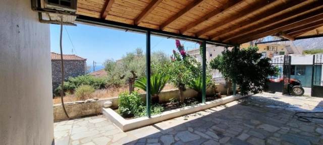 For Sale Detached house, East Mani, Sunny and airy ground floor house of 90 sq.m. on a 400 sq.m. plot in a friendly, seaside village with small shops and restaurants. The house comprises a living room, a kitchen with a fireplace, two double bedrooms with cupboards and two bathrooms. The covered verandas at the front and back offer day round shade and cozy spots for alfresco dining. There is also a 15 sq.m. storeroom. Connected to mains water and electricity. A property ideal as a permanent residence or a holiday home for anyone wanting to enjoy Greek village life by the sea.The sandy beach is only 950m away, Gytheio with all amenities is 31 km and picturesque Areopolis is a 20 minute drive , features: Parking , 2000 built year, Storage room, Fireplace, Double Glazed Windows, Window Screens, Balconies, Airy, Roadside, Bright, AirConditioning, Solar water system, Trees, Back yard (Garden) 1 fireplace/s