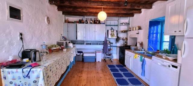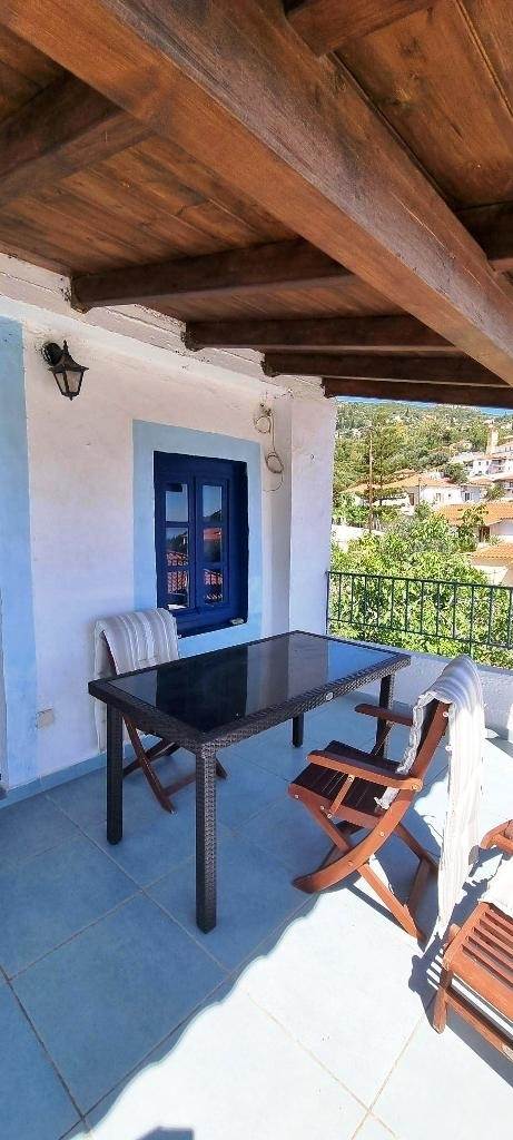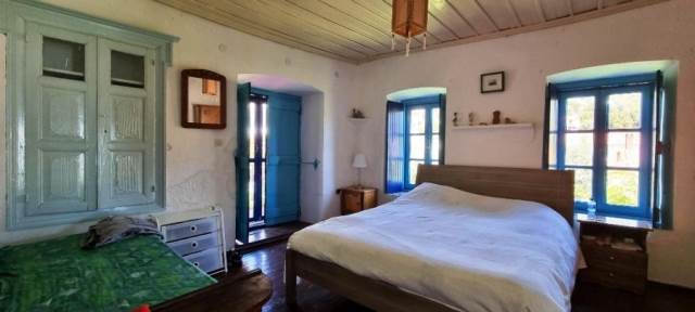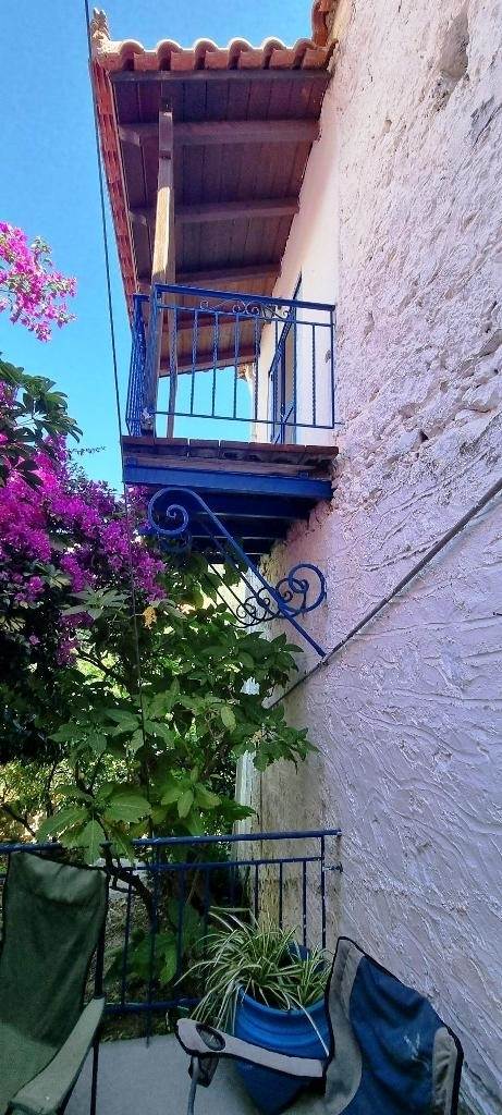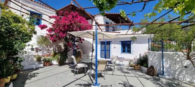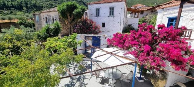 For Sale Detached house, Tyros , A traditional stone house that honours the cultural heritage of the region by preserving its original architectural style and features, thus maintaining its authentic spirit. The property spans three levels, covering a total area of 228 m², and is surrounded by a vibrant garden, all set within grounds of 417 m². A special highlight is the charming central courtyard on the ground level, perfect for entertaining and family gatherings. On the upper level, you will find a cosy sitting room with a wood-burning stove, two double bedrooms, a single bedroom or home office, two bathrooms, and a spacious covered terrace with views of the village and the sea. The ground level features a comfortable kitchen with traditional wooden cupboards and a living area that opens out onto the courtyard. This level also contains a third independent bedroom with access to the garden, with the potential to add an extra bathroom. The lower level of the property is preserved in its original condition and currently serves as a large storage area, with an additional 19 m² loft for auxiliary services. This level could easily be converted into additional living space. The restoration of the house has been carried out with great care, maintaining the original interior layout and preserving the old elements, which give the property a charming, nostalgic atmosphere. The beach, shops, restaurants and cafes are just a 6-minute drive away, features: 1955 built year , Storage room, Balconies, Stonehouse, Traditional house, Bright, Back yard (Garden) , view :Sea view